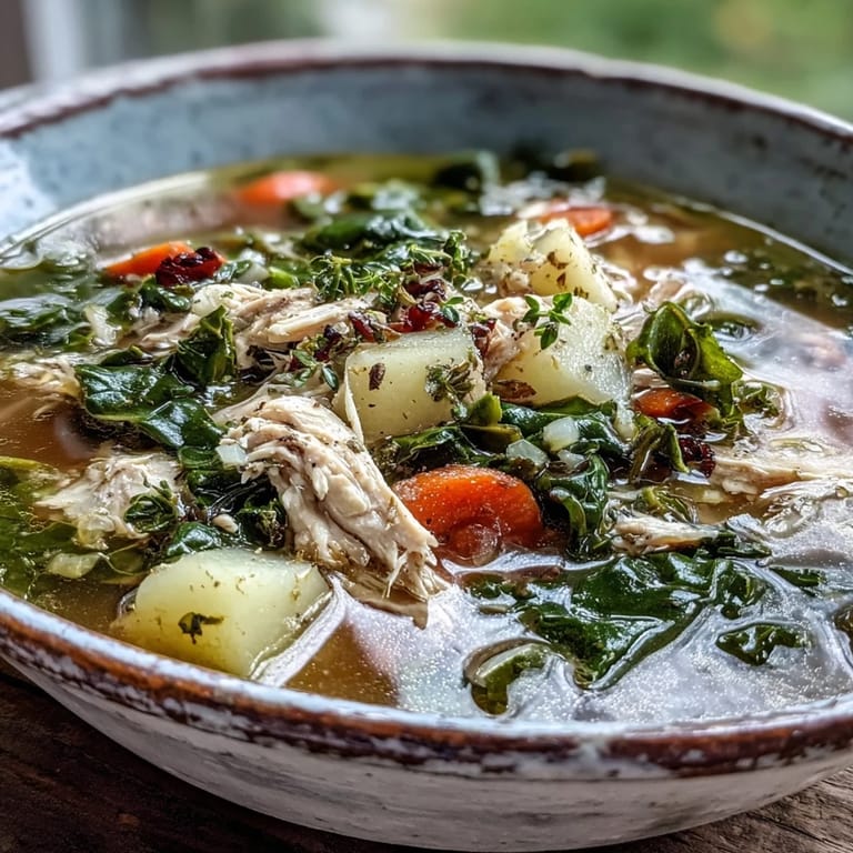 Pin it There's something about a pot of collard greens soup that stops you mid-morning and makes you pause. My neighbor handed me a container one winter afternoon, steam rising from under the lid, and I sat at my kitchen counter watching it cool just enough to taste. The broth was golden, the greens had that tender depth that only comes from patient simmering, and the shredded chicken dissolved on my tongue. I asked her for the recipe that day, and she laughed, saying it was the kind of thing you learn by doing, not reading. So I did.