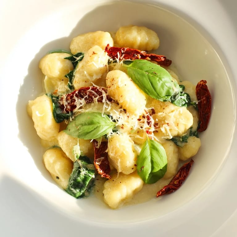 Pin it There's something almost magical about watching store-bought gnocchi transform in boiling water—they sink, then bob to the surface like little clouds seeking the sky. Years ago, a friend visiting from Rome showed me her trick for recognizing the exact moment they're done, and now whenever I make this creamy Tuscan version, I think of her watching over my shoulder with that knowing smile. The pillowy gnocchi meet a silky garlic-Parmesan cream flecked with jewel-toned sun-dried tomatoes, and the whole dish comes together in less time than it takes to pour a glass of wine.