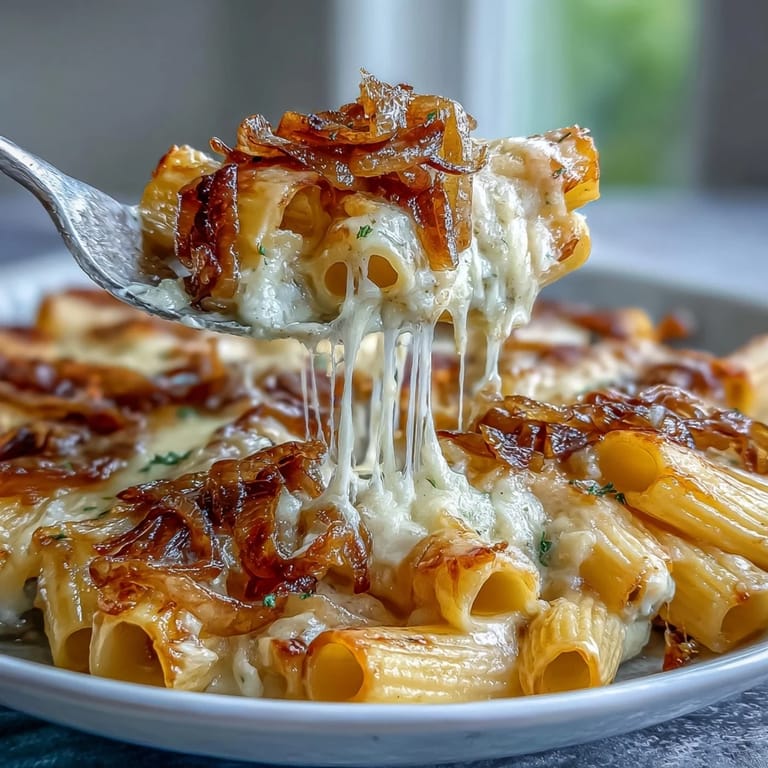 Pin it Steam fogged up the windows as I stirred onions, letting their aroma fill the kitchen just as the sunlight began to dip behind my neighbor's rooftops. The first time I attempted French Onion Pasta Bake, I wasn’t quite sure if my onions would ever caramelize—they seemed to lounge in the pan for ages before finally turning molten gold. That moment, just as the cheese melted into a bubbly, golden crust, I remember the quiet hush before serving: even skeptical friends couldn't wait to dig in. There’s something about transforming a classic soup into a cozy, noodle-laden casserole that made this dish feel unexpectedly special. And yes, crispy cheese edges are always my favorite part.