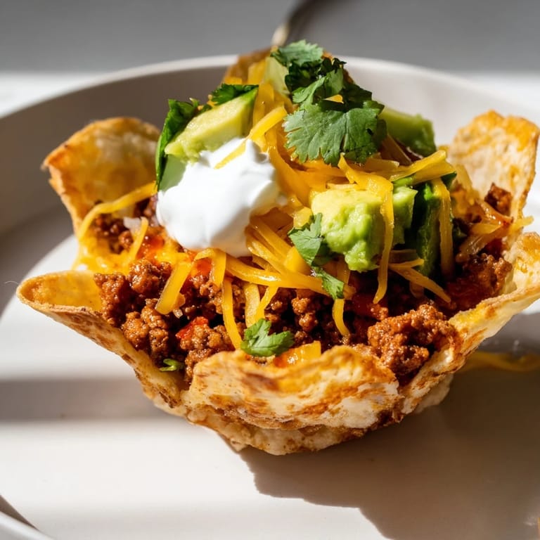 You can brown the beef and season it up to two days ahead, storing it covered in the refrigerator and reheating gently before filling the cups. The baked cups themselves stay crisp for about four hours at room temperature if covered loosely, or you can freeze the cooled, unfilled tortilla cups for up to two weeks and just reheat them in a 180°C oven for 5 minutes before filling and topping. I've also frozen the whole assembled cups (after filling, before baking) and baked them straight from frozen—just add 3 to 4 extra minutes to the bake time and watch for cheese bubbling at the edges.