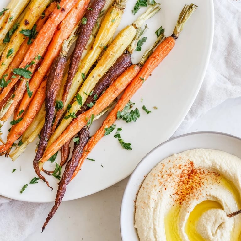 Pin it The first time I saw rainbow carrots at the farmers market, I stood there staring at the purple, orange, yellow and white bunches like Id discovered vegetables from another planet. The farmer laughed and told me they taste sweeter than regular carrots, especially when roasted, and something about that promise stuck with me all the way home. Now whenever I need a dish that makes people gasp when it hits the table, these carrots with their earthy sweetness paired with creamy hummus never fail to deliver that moment of pure edible joy.