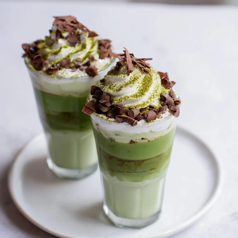 Pour the white chocolate mixture over ice first, then gently add the prepared matcha on top to create visible layers.