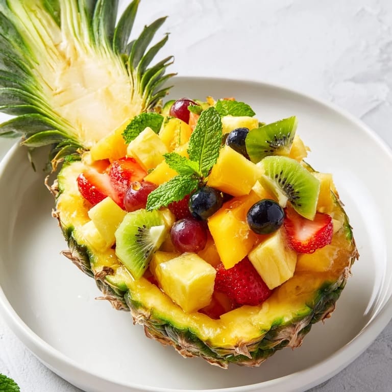 Pin it A vibrant and refreshing fruit salad served in a pineapple boat, perfect for summer gatherings or as a show-stopping brunch centerpiece.